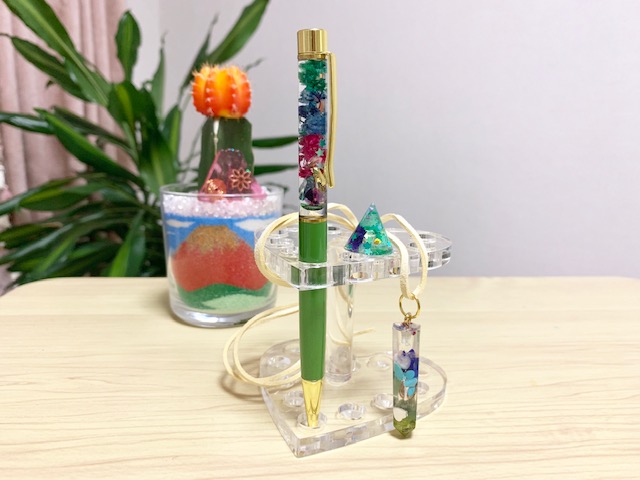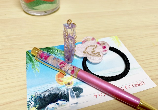 ヘアクリップ、オルゴナイトボールペン、キーホルダー
