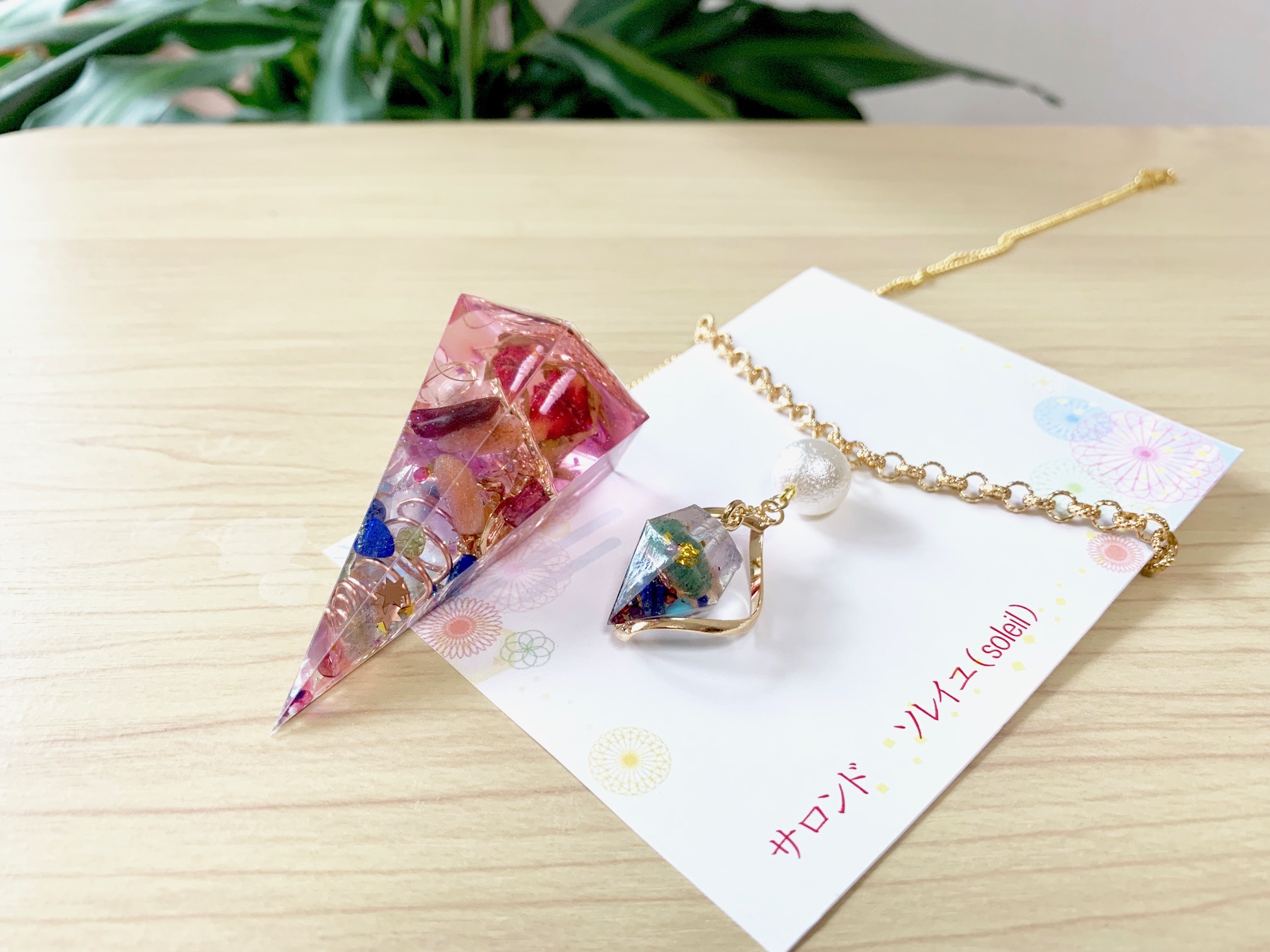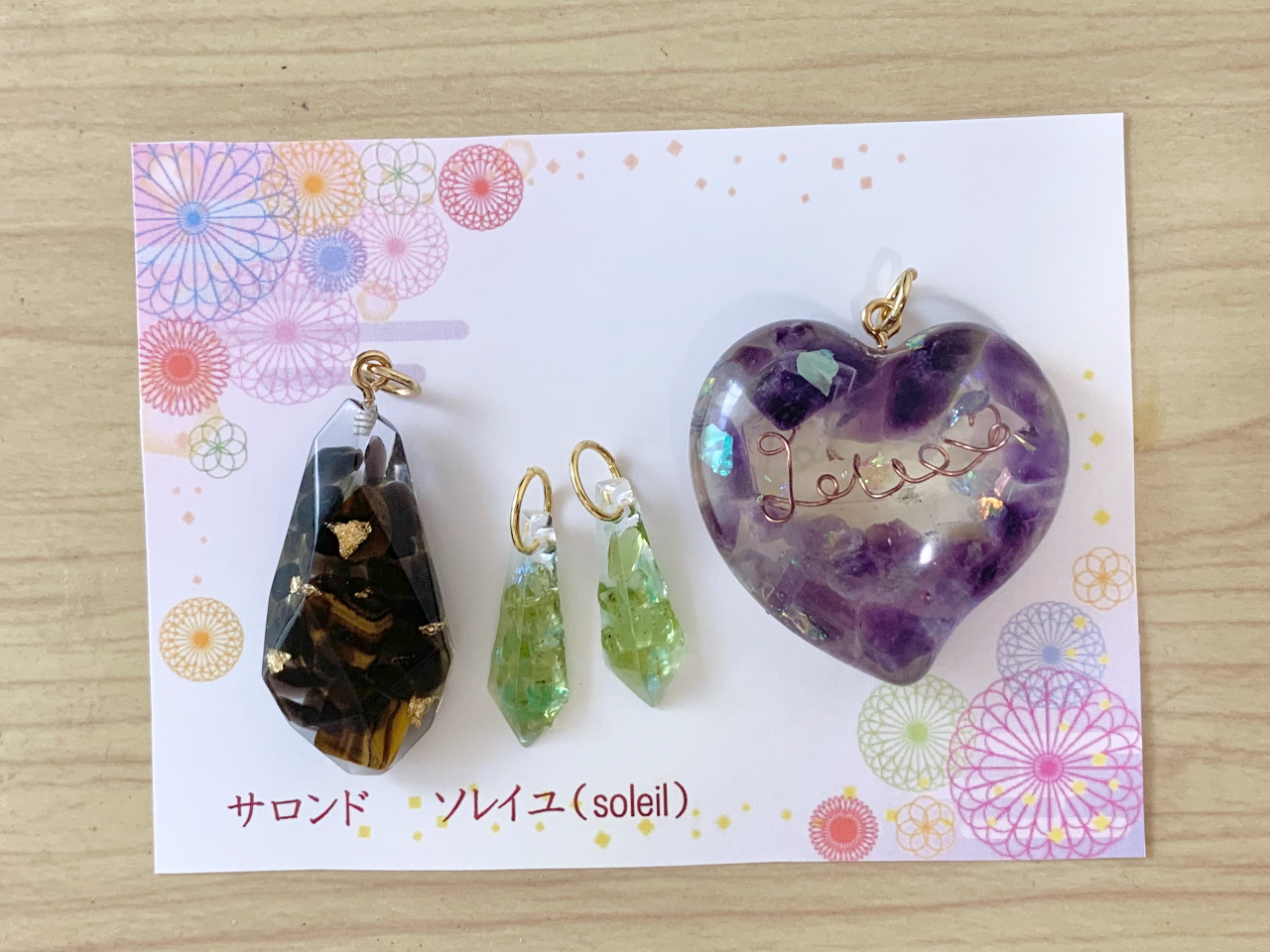 ・作品:ペンデュラムやネックレス、チャーム、イヤリング、ピアス、