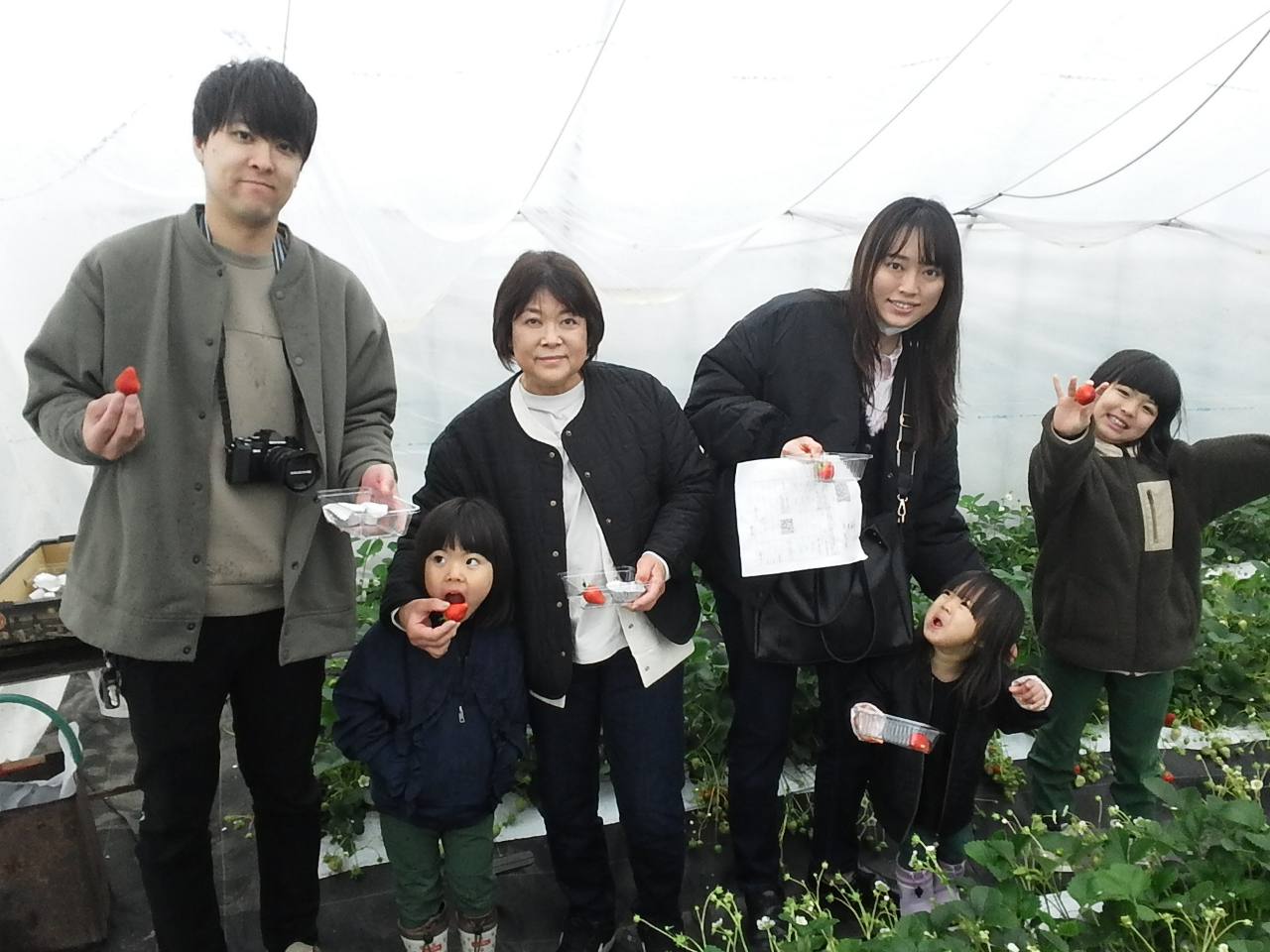 | 料金に含まれるもの | ハウス貸しきり30分いちご狩り、練乳、いちご狩り最中の写真、ブルーベリージャムorいちごのドライフルーツ |