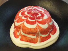 運ばれて来た時はパンケーキの上にクリームがのった状態で透明のフィルムで包まれています。