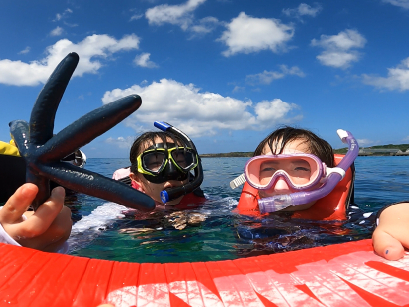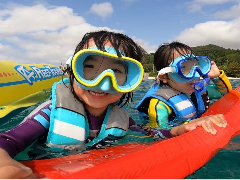 小さい子供たちでも楽しめるシュノーケリング!楽しそうな良い写真!