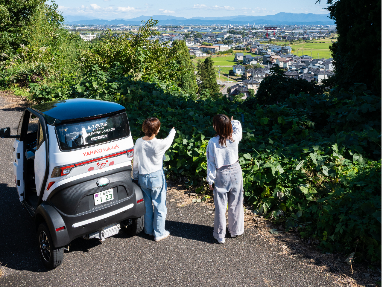 【新潟県・弥彦村・体験】 3人乗りの電動トゥクトゥクで弥彦村を冒険しよう!弥彦山ロープウェイ2枚付きSetコース(120分)家族、友達、カップルにおススメ