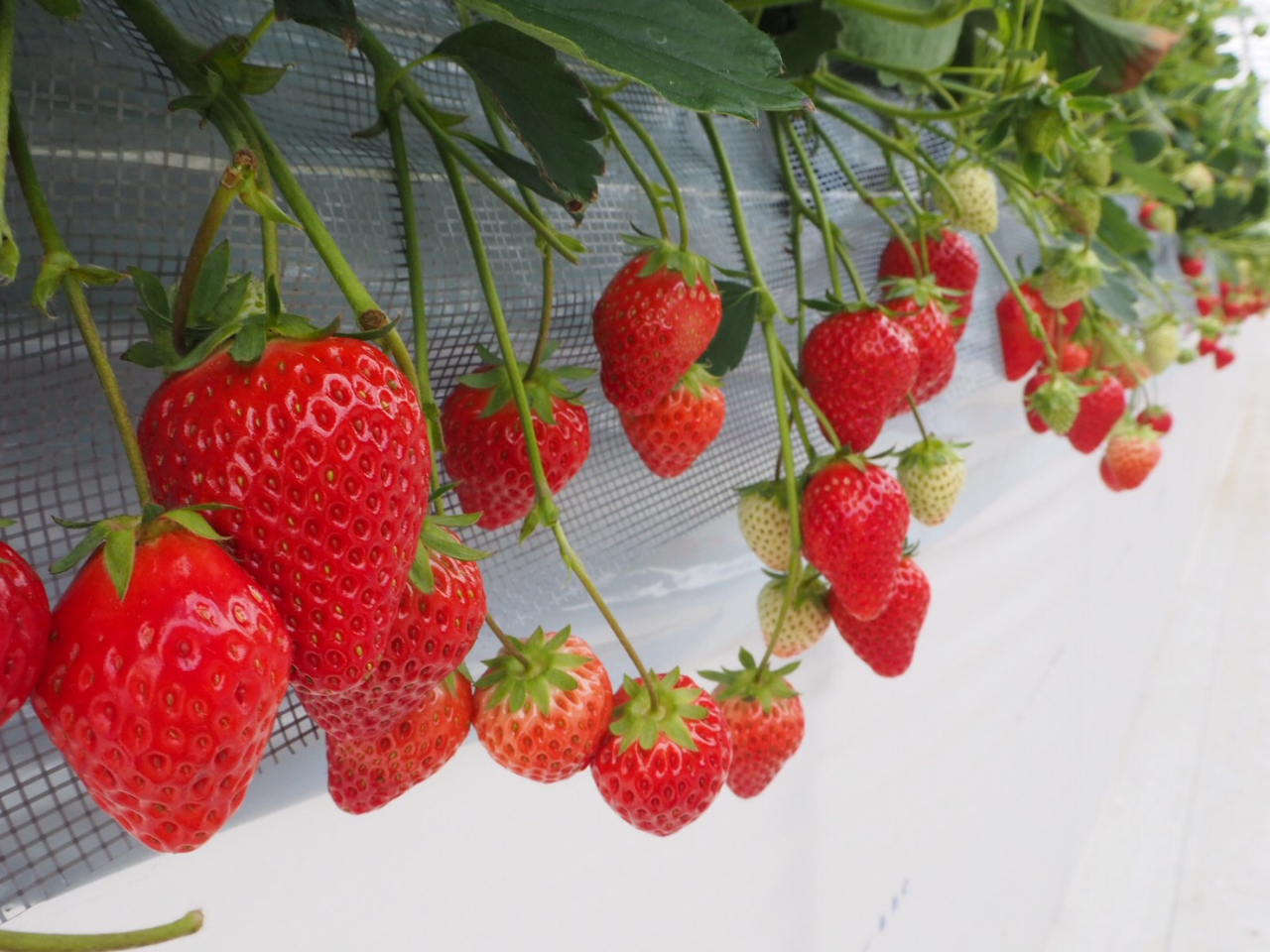 農業用ハウス内の環境(温度・湿度・日射・風量・養分・水分など)をコンピューターでコントロールする統合環境制御技術を導入♪苺にとって最適な栽培環境作りにこだわっています!