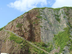 知床観光船乗場のそばにそびえる高さ60mの岩で、側面の階段から登ることができます。
