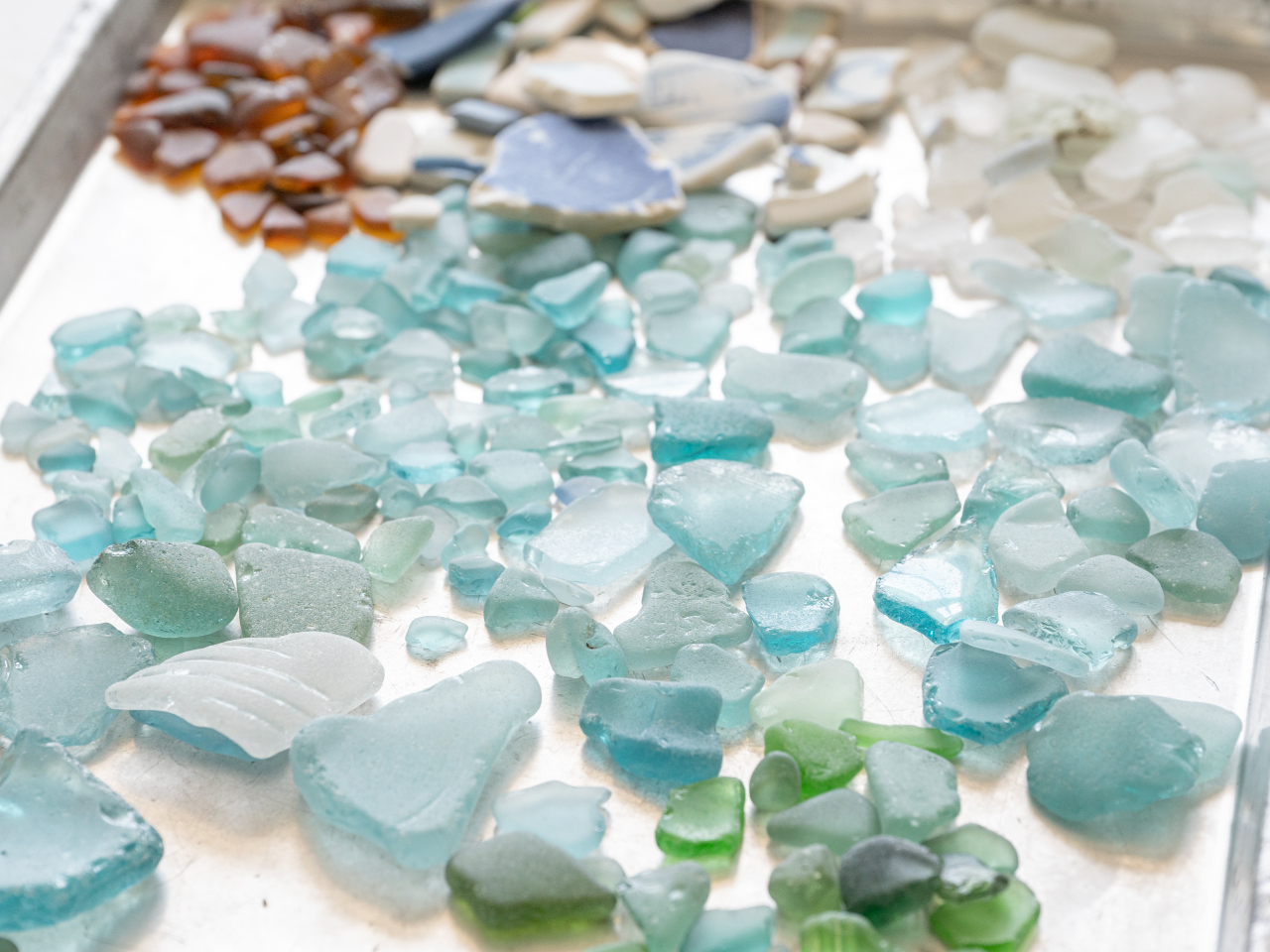 美しいシーグラスや貝殻を拾える海岸へ行き、実際にビーチコーミングをやってみましょう。