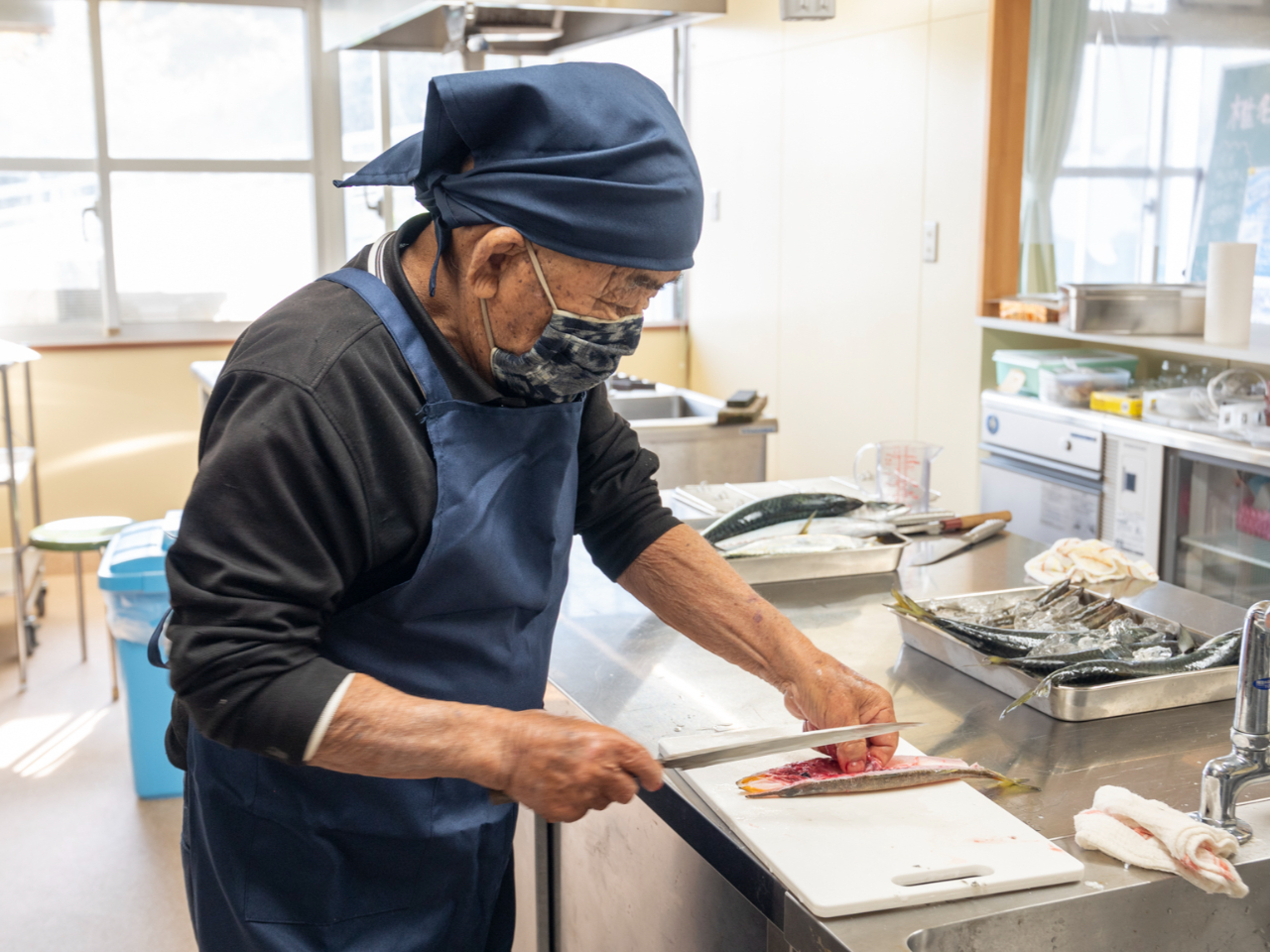 その日の朝に獲れた魚をさばき、元漁師と一緒に干物づくり体験!!