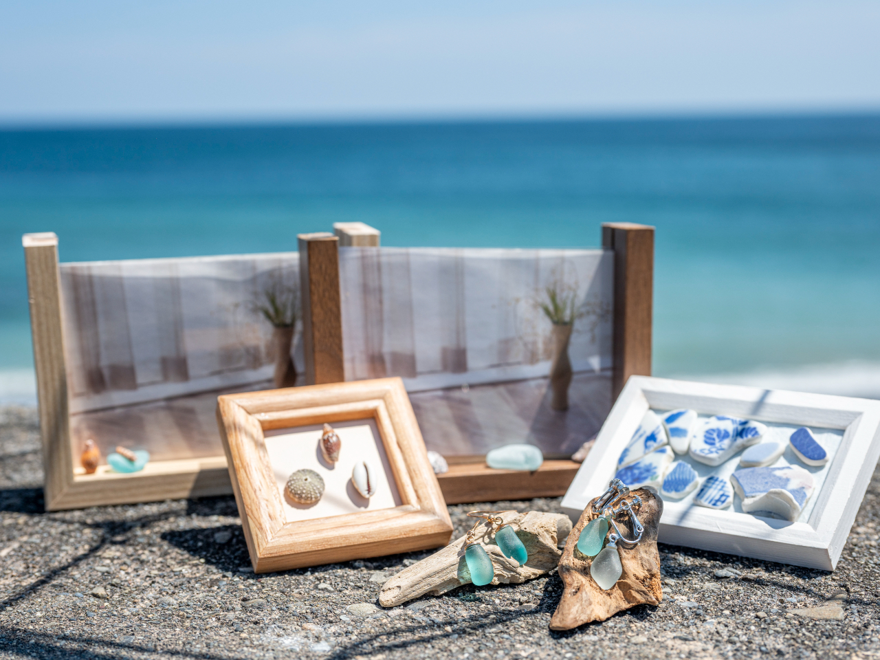 美しいシーグラスや貝殻を拾える海岸へ行き、ビーチコーミングをやってみよう!収集したものを使って世界にひとつだけの作品をつくろう!