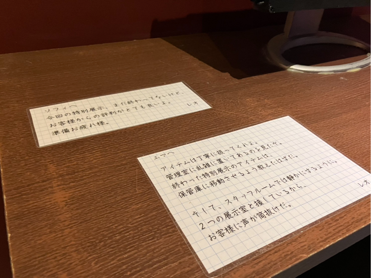 「シアターテーマ」とは、通常の脱出ゲームとは一味違い、物語の主人公になることをメインとしております。謎解きをお楽しみいただくのももちろんですが、お部屋内の音声、掲示物、文章をよく読み、伏線を拾って物語を完成させて推理していきましょう!