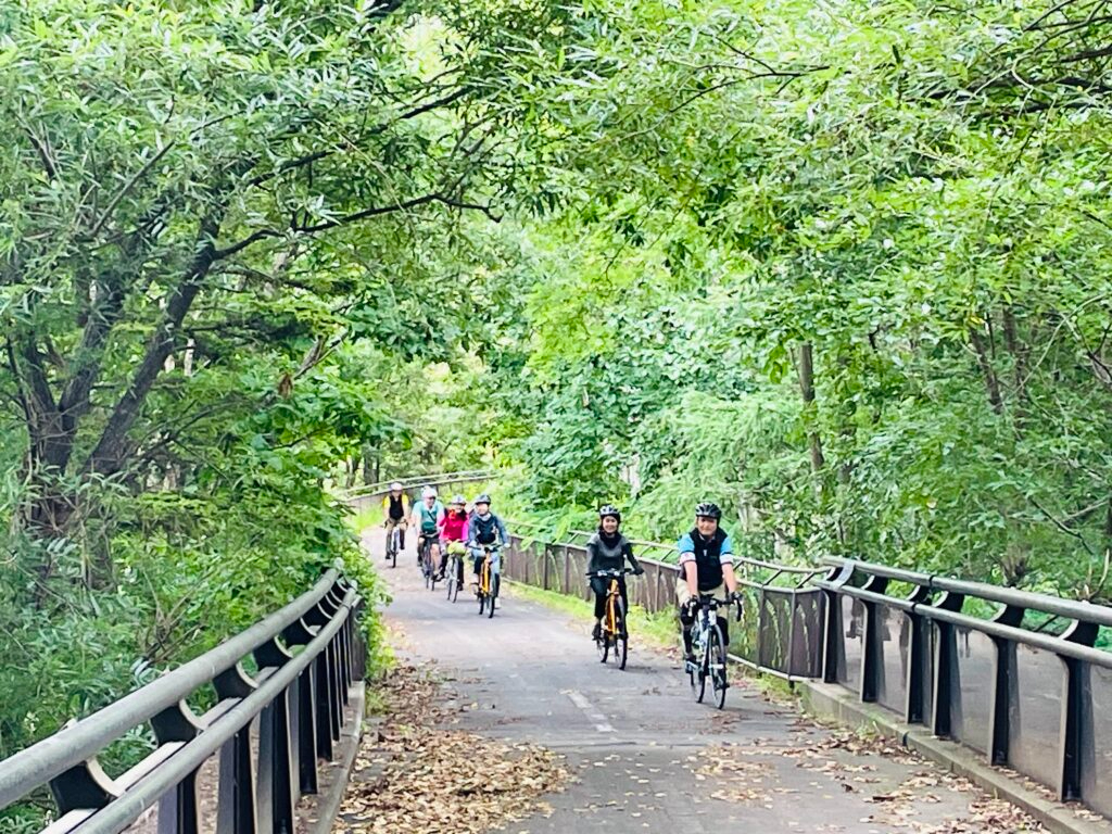 ・旧釧網線跡を活用した自転車専用のサイクリングロードを網走湖を横目にeバイクでゆっくりサイクリング