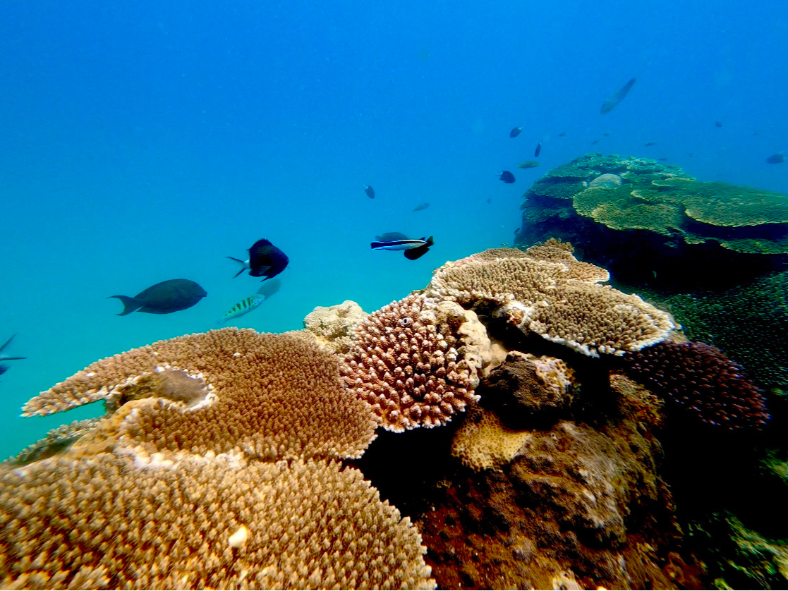 土盛海岸にはたくさんの浅瀬でも熱帯魚はもちろん仲良しの優雅なウミガメが住み着いて遭遇率は70%ぐらいです!絶景珊瑚と土盛ブルーの海でウミガメと泳ごう!