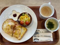 新しくて大きい駅です。JRは高架になっています。1階の駅構内には、コーヒーハウス、ベーカリー、お土産品売り場などのお店があります。COCOCHIコーヒーでキャベツとベーコントーストのモーニングセット(800円)で朝食をいただきました。とても美味しかったです。