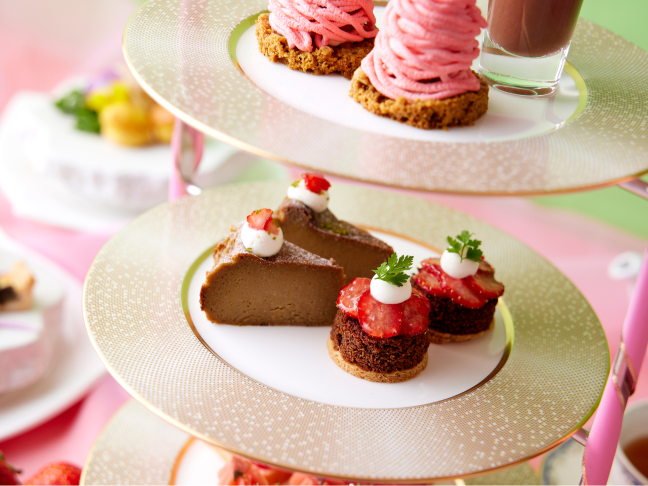 旬の苺をふんだんに使用、ホテルパティシエがひとつひとつ心を込めて仕上げたアフタヌーンティーセットを華やかなティースタンドでご提供いたします。