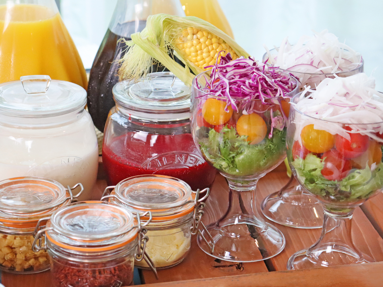 \その他、サラダバーやスイーツ6種、日替わりパンも多数ご用意ございます♪/