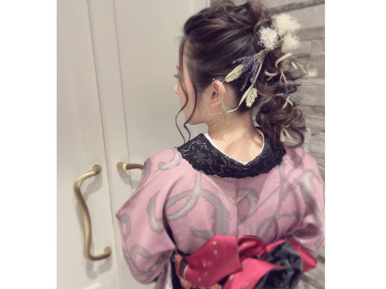 カジュアル着物(小紋)レンタル+着付け+簡単まとめ髪プラン♪【平日限定】