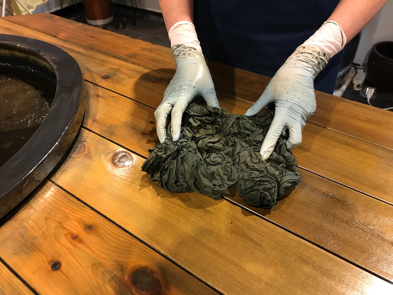 ・徳島産の阿波藍を灰汁発酵建てした染料で体験を行います