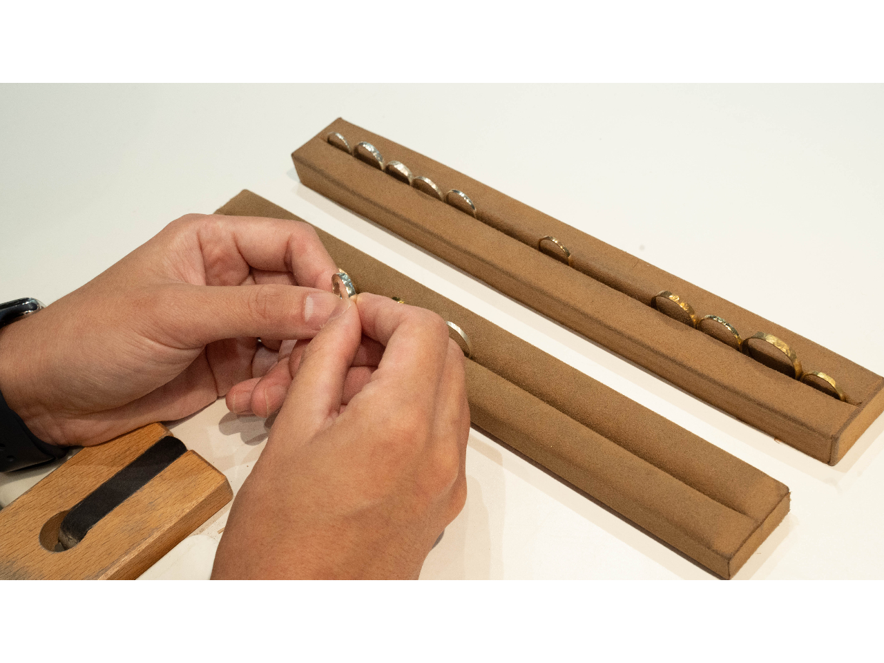 4.リングをご自身のサイズまでトントンと伸ばしていきます。