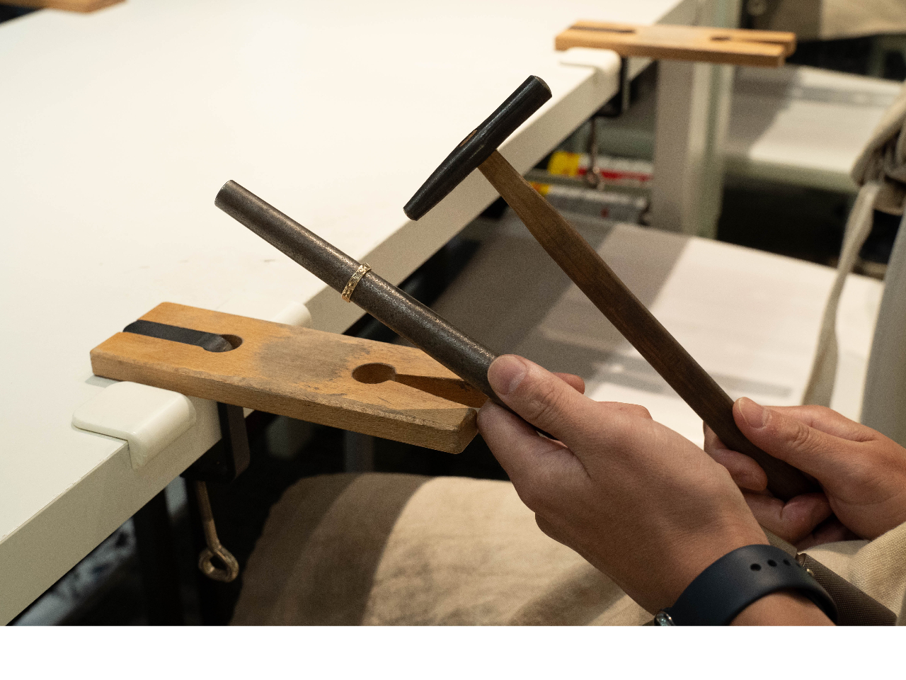 専用のハンマーで仕上げる加工。