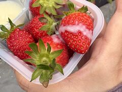 いちご狩りの前に練乳の入ったコップがもらえます。ウェットティッシュを持参すると良いです。詳細情報をみる