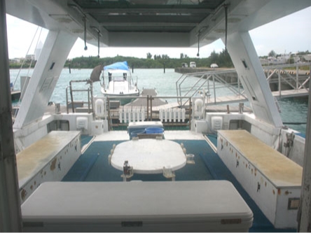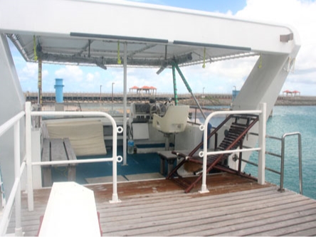 乗船して頂く船は双胴船(カタマラン)式で2隻の船体を結合させて