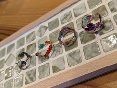 旅行中、天気予報が雨だったので雨天でも楽しめるスポットを探して予約しました。着いてから窓の外の景色を眺めながら温かいほうじ茶を頂きホッと一息。まずは、自分の指に合う指輪を探します。それから、マニキュアやラメを少しづつ色や配色を考えながら塗る乾かすを繰り返し1時間半くらいで完成。センスがないので出来上がりが心配でしたが(笑)出来上がりに満足。指導もわかりやすく皆んなで楽しくお喋りしながら作れました。