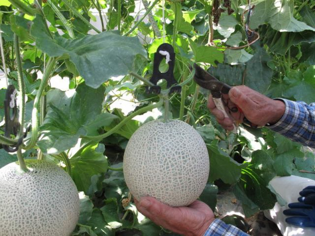 フルーツの里 田原坂のメロンは、つるが少し枯れた状態が食べ頃です。