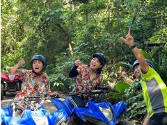 飛行機の1時間遅れ、渋滞の上に道を間違える始末。空港から2時間の余裕をみての予約だったのに・・・沖縄の渋滞をなめてました。なんとかギリギリの到着時間ダッシュで受付へ、嫌な顔せずに対応していただきました。焦りながらバギーへ向かい練習をしてからジャングルへ。しばらく緊張しながらも自然を満喫していると息子が木に衝突。スタッフの方が撮影し、この写真を沖縄警察へ提出します!と冗談を・・・ようやく顔の緊張がほぐれてきた息子でした。途中途中の自然の勉強。ガジュマルの木登り、沖縄に上陸してすぐの素敵な体験でした。スタッフの方も親切な方ばかりでいっぱい写真撮って頂きました。良い旅行の始まりでいい思い出になりました。ありがとうございました。