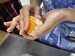 家に持ち帰ったみかん大福が、めちゃんこ美味しくて感激しました。イチゴ大福より美味しいかも。作り方を丁寧に教えてくださり、とってもいい体験ができました。みかん大福と栗大福とどら焼きを作りました。白あんとシロップ漬けのみかんって相性いいのですね。栗大福も食べるの楽しみです。どら焼も、焼き方教えていただきました。銅のプレートだと均一に綺麗に焼けることが分かりました。プロの道具は、家庭用とは違ってスゴイと思いました。
