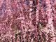ビンクの枝垂れ梅の大木で埋め尽くされた庭園