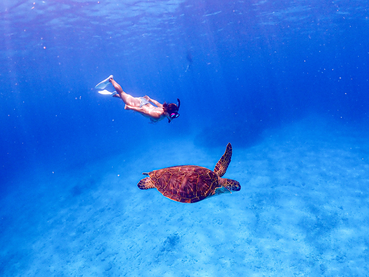 無人島でウミガメスノーケリング&スキンダイビング★スタッフが一緒に泳いで教える素潜り体験!小さなお子様連れでも安心♪【宜野湾発/慶良間(チービシ)開催/約4時間】