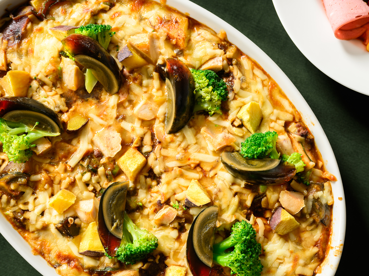 ・鶏と薩摩芋とピータンの麻婆グラタン