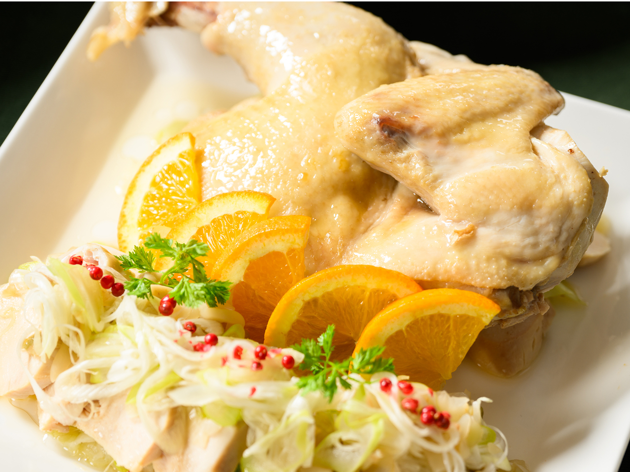 ・北海道「知床どり」のマリネオレンジ紹興酒蒸し