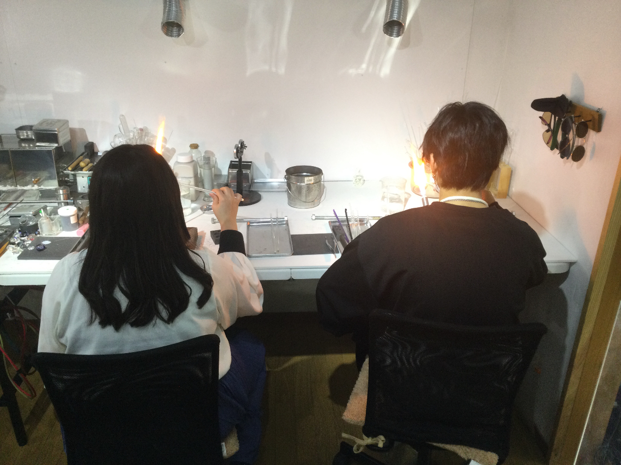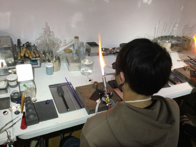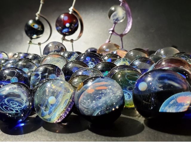 ガラスと言えば、とんぼ玉や吹きガラスの体験が多いと思います。こちらでは全国的にも珍しい酸素バーナーを使って宇宙を閉じ込めたガラス玉やガラスペン作りが体験できる工房です。