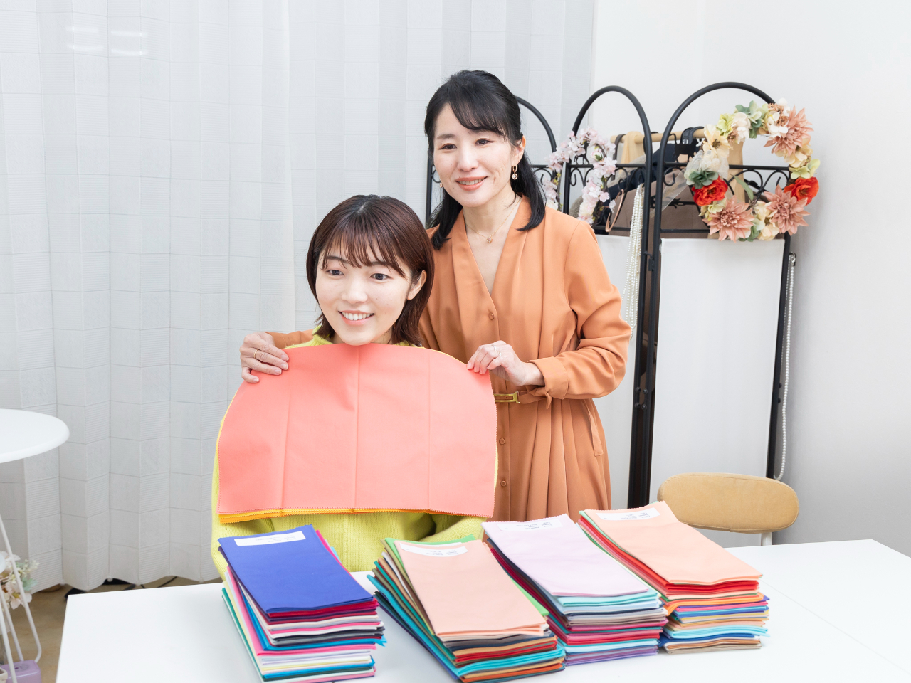 数十枚のドレープをあてて似合う色を診断します