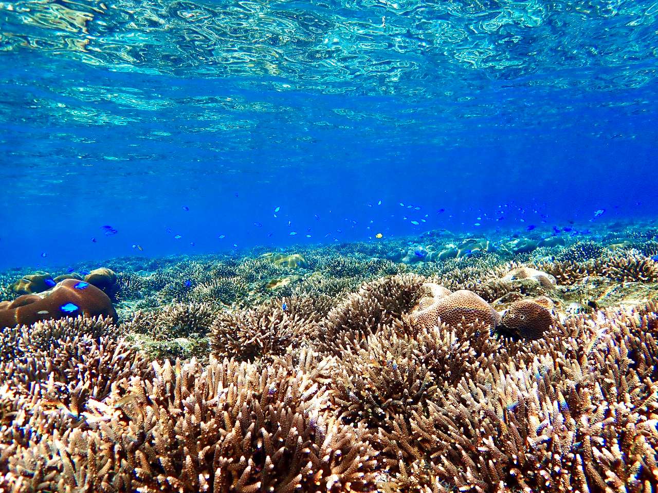 海の中はサンゴまみれの美ら海♪小魚が迎えてくれるよ♪