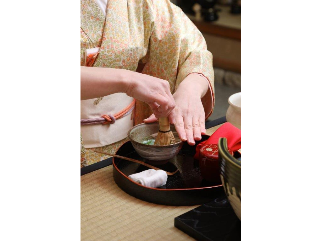 茶道専門のスタッフが付いて、抹茶の点て方や飲み方なども体験していただけます。