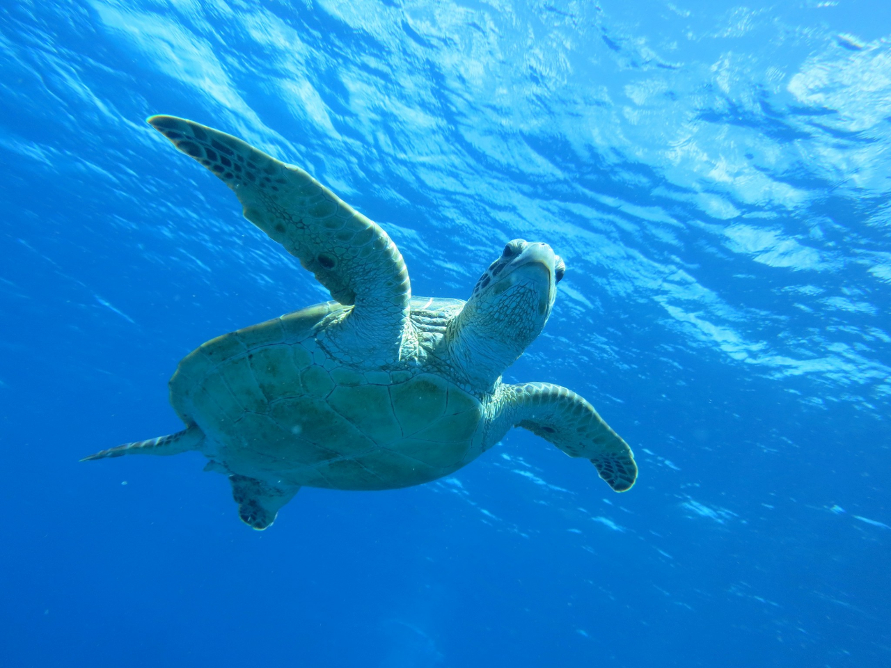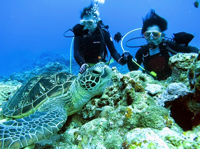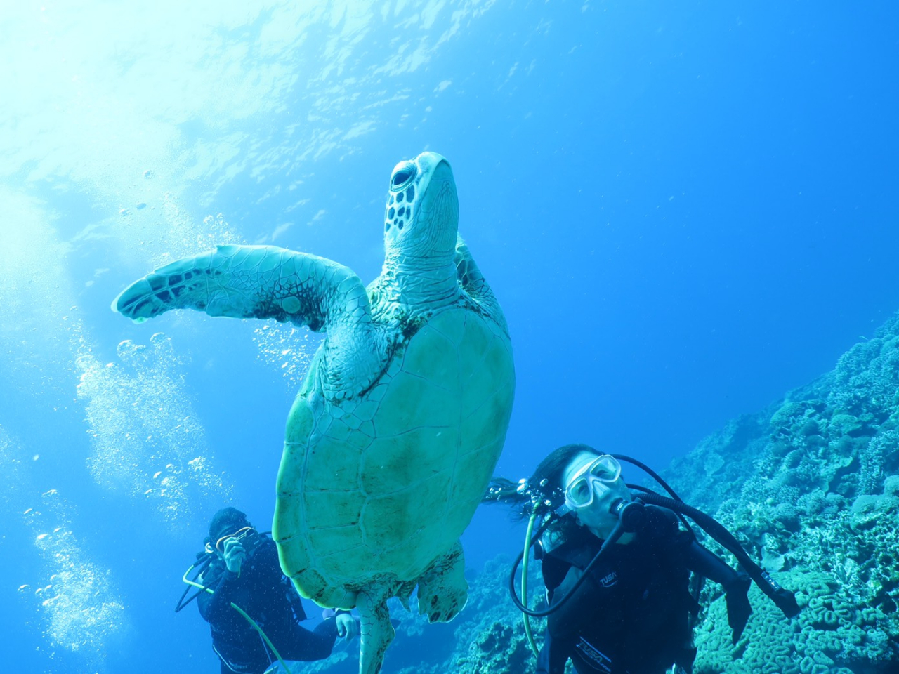 自然あふれるケラマの海でウミガメとダイビングを楽しめます。