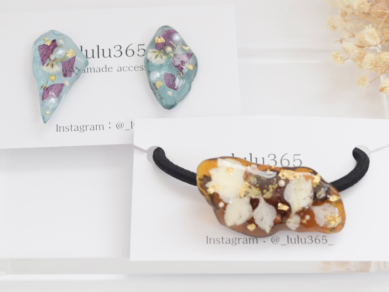 金属アレルギーの方も安心!樹脂やサージカルステンレス素材のアクセサリー金具をご用意しています。