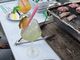 沖縄長期滞在中に両親が来沖。アラマイハナホテル周辺の晩御飯を検索、当日予約で来店。風が強く心配でした。タクシーで到着して受付に到着可愛いお出迎えに口元が緩む。席に案内され着席すると見渡す限りのオーシャンビューは圧巻。徐々に沈む太陽が赤みをおびていい雰囲気。まずはかわいいドリンクで乾杯。木の皿に盛られた厚めに切られたお肉。分厚いサーロインはテーブルで仕上げてくれます。どれも美味しい。雲一つない空に沈む夕日が赤くなり水平線に沈みこの世の景色と思えないほどの絶景。風が強いので屋根のある席に移動。最後まで気の利いた接客。大満足です。