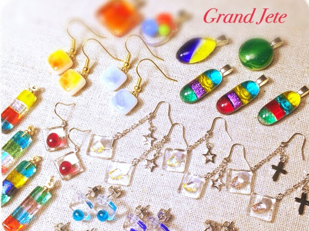 ◆工房で用意したベースのガラスに様々なガラスのかけらを重ねてオリジナルアクセサリーをお作り頂けます♪