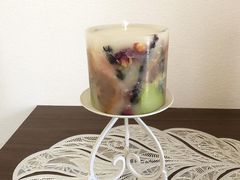親戚の結婚祝に、と初めてチャレンジ。キャンドルが入ったプラスチックとの隙間何ミリかのところに、色とりどりの花や葉などを配置する作業は、全く配置イメージ湧かず不安でしたが、適宜アドバイスしてもらい、素敵なキャンドルができました。固まるまでの約40分も、素敵な空間でコーヒーとお菓子いただきながら、おしゃべりして楽しかったです。