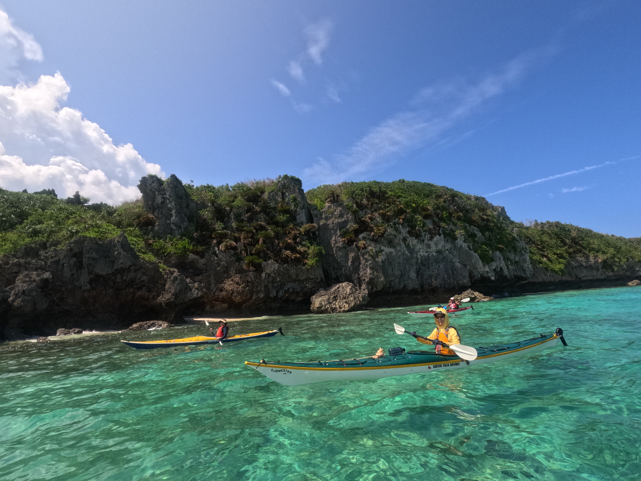大自然の残るやんばる地域で、その日の天候に合わせて移動しベストポイントでツアーを行います。基本的には南風の日は沖縄らしい海岸の残る今帰仁村の海へ、北風が吹けば沖縄最大級のアオサンゴ群落のある名護市大浦湾へ。シーカヤックに乗ってポイントまで漕ぎシュノーケリング!お昼は綺麗な海を眺めながら浜辺で特性アウトドアランチ!外で食べるご飯は言うまでもなく最高です。小さなお子様連れのお客様や、初めての方でもお気軽にご参加ください。※冬季11月から3月まではシュノーケリングは基本的に行いません。シュノーケリング希望の方は事前にお知らせください。