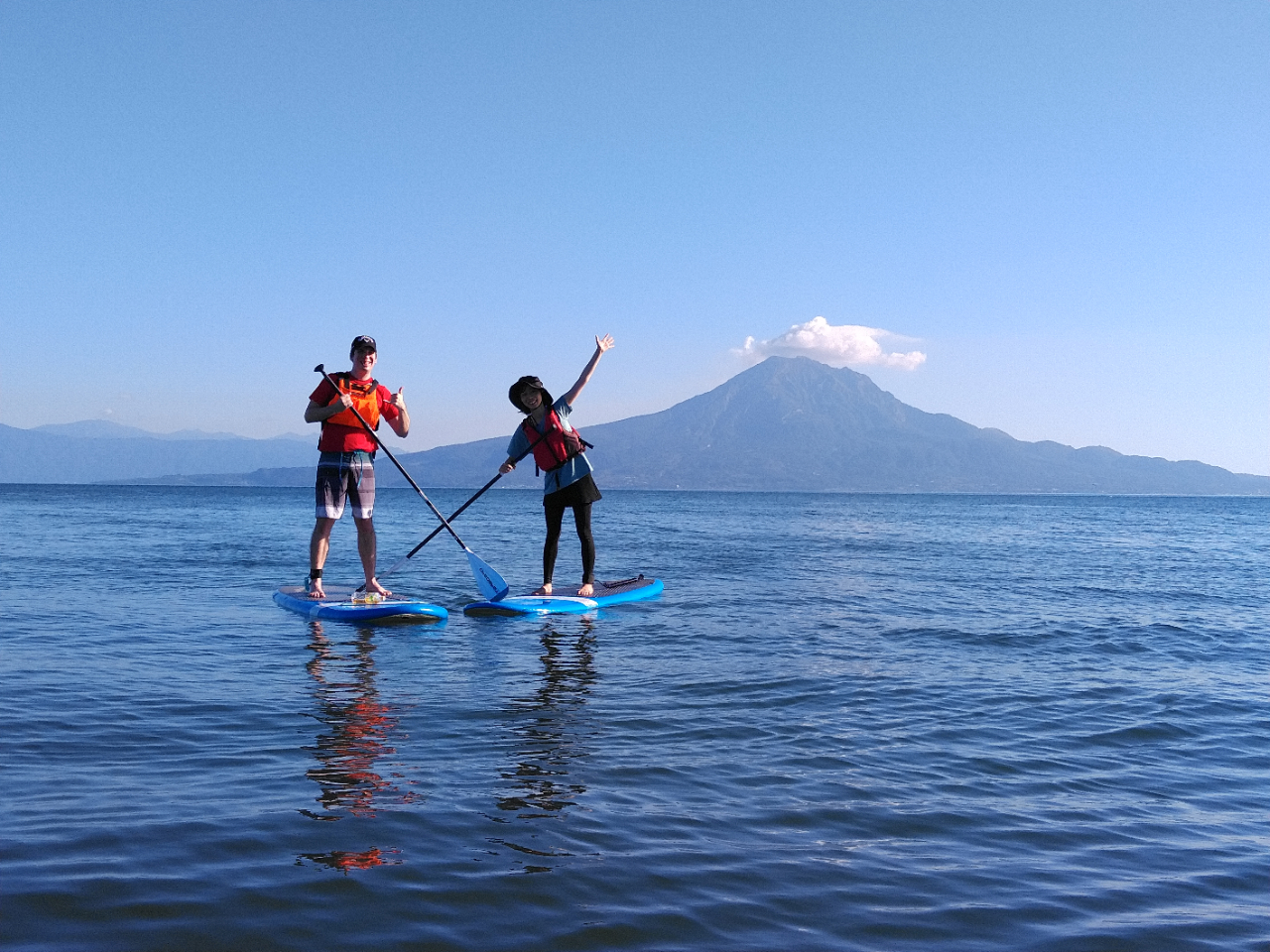 【SUPでなぎさ公園往復一日コース】初心者でも大丈夫!レクチャーを受けて桜島を見ながら冒険気分を楽しめる!(昼食ケータリング付)日本レクリエーショナルカヌー協会(JRCA)インストラクターが指導します