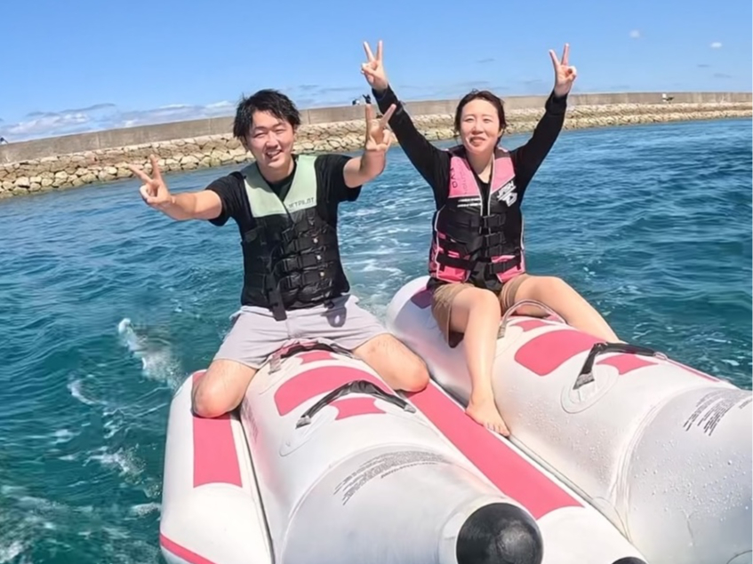 【宜野湾発】<当日OK!>マリンスポーツ2点セット★ジェットスキー・バナナボート・マーブル・ビッグボーイレーシング・サマータイム★から2点選べる♪4歳〜OK!ファミリー・カップル・お友達同士で!!のプラン詳細
