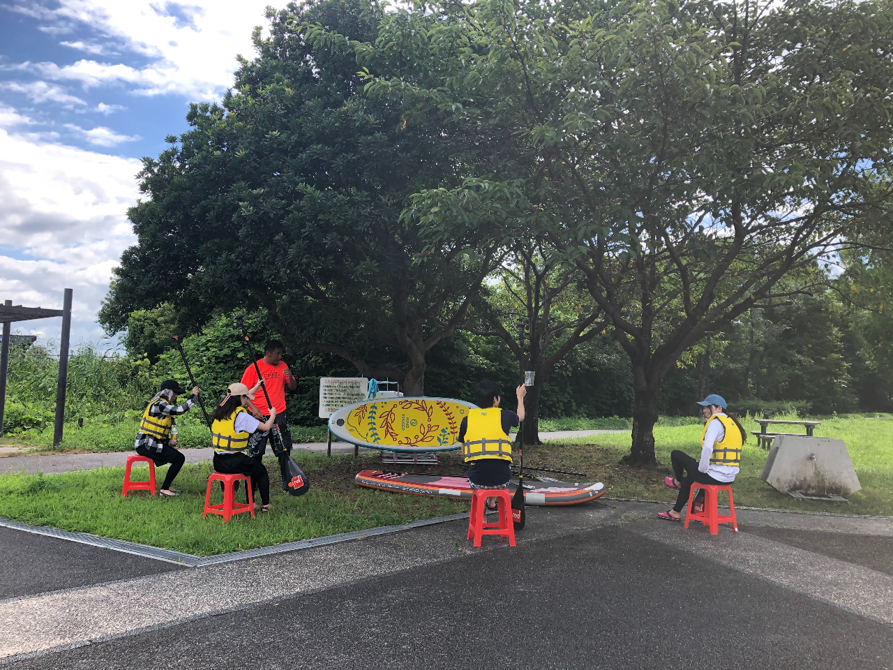 スタッフが乗り方、パドル操作方法をご説明いたします。