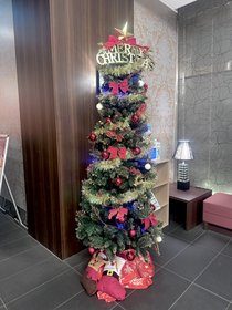 当ホテルでも一足早く、ロビーにクリスマスツリーを飾りました!フロントカウンターにもミニツリーを飾ったり、自動精算機にもサンタクロースやトナカイで飾りつけしております☆