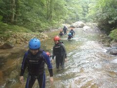 当サイトで皆さんの感想を見てましたが、実際に体験すると、その爽快感、自然の美しさ、仲間との連帯等、とても楽しい体験でした。装備も、ウェットスーツ、ブーツ、ライフジャケット、ヘルメットと、万全の装備で、安心して体験出来ます。私は、普段からランニングをしており、フルマラソンも走るのですが、水の中から、渓流の岩に足を掛けたり、岩の上を歩いたりするのは、想像以上に大変でした。天気にも恵まれ、充実した時間を過ごすことが出来ました。インストラクターさんは、気さくで、楽しい方でした。ありがとうございました。