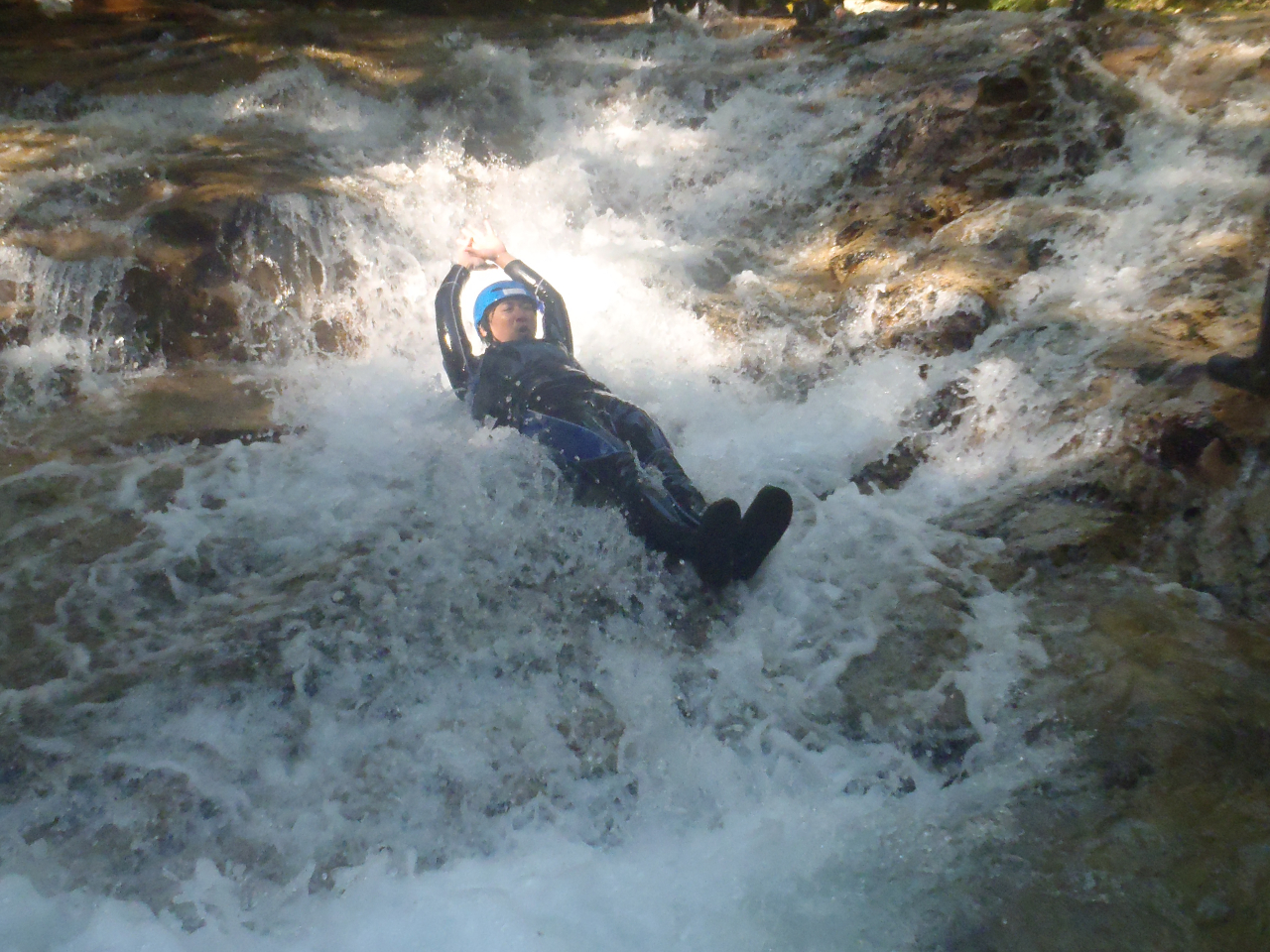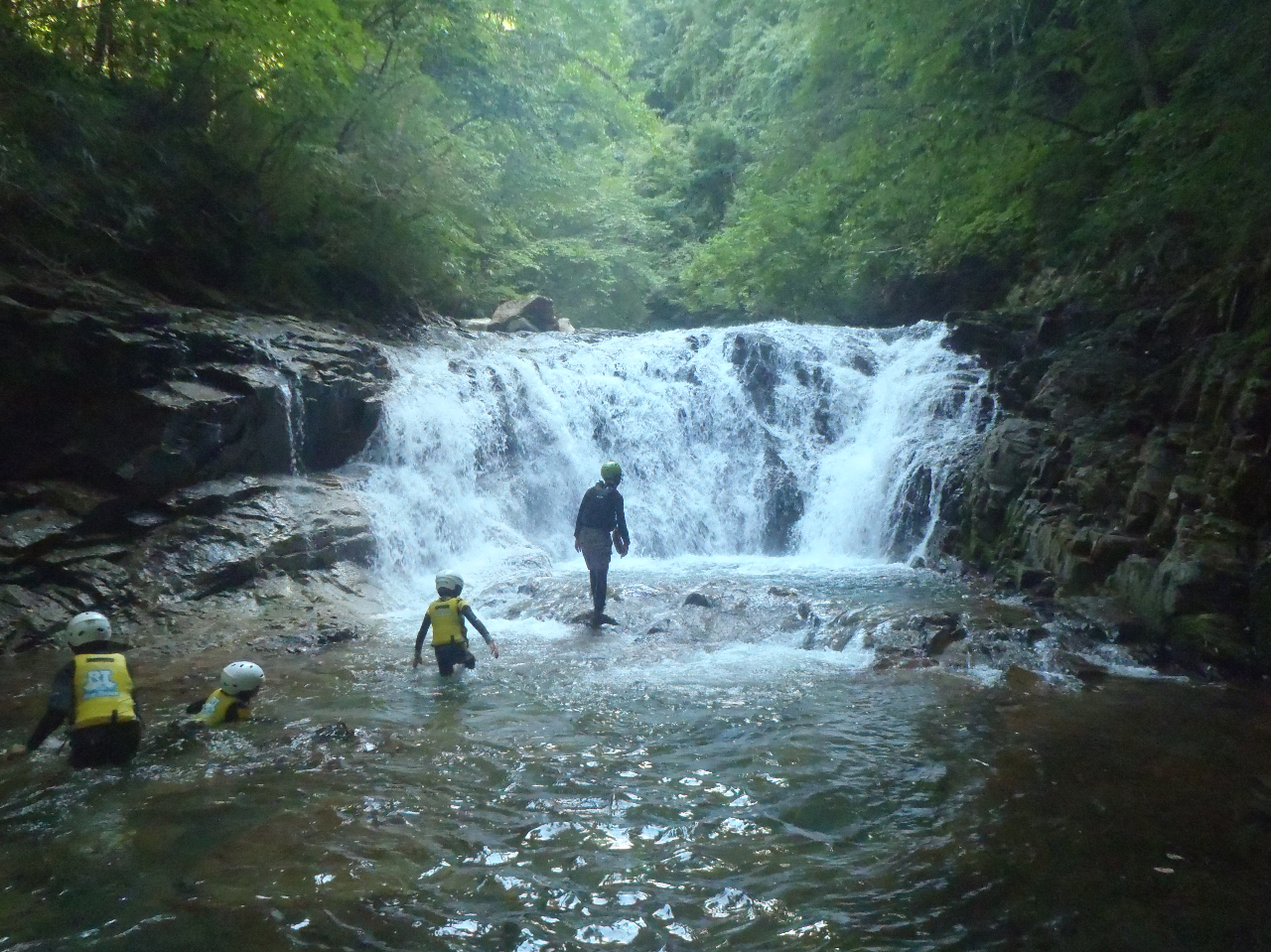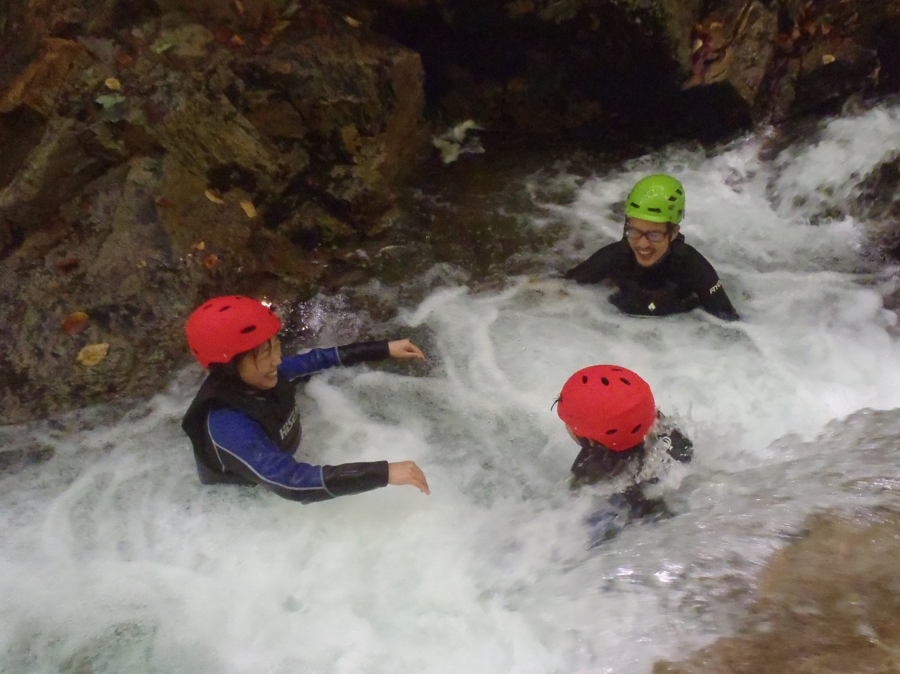 途中、ご希望者には高所からの飛び込みや、天然スライダーを
