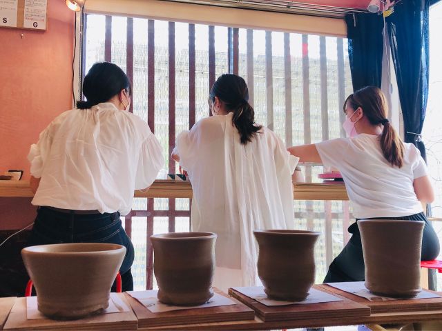 岐阜県土岐市・瀬戸市せと品野IC~車18分、貸切個室ろくろ陶芸&手びねり小物造り仲良しプラン2〜3名様(小学生以上)2つ体験楽しめます!カップル&ファミリー向け早期予約14日前予約特典地域クーポン対応