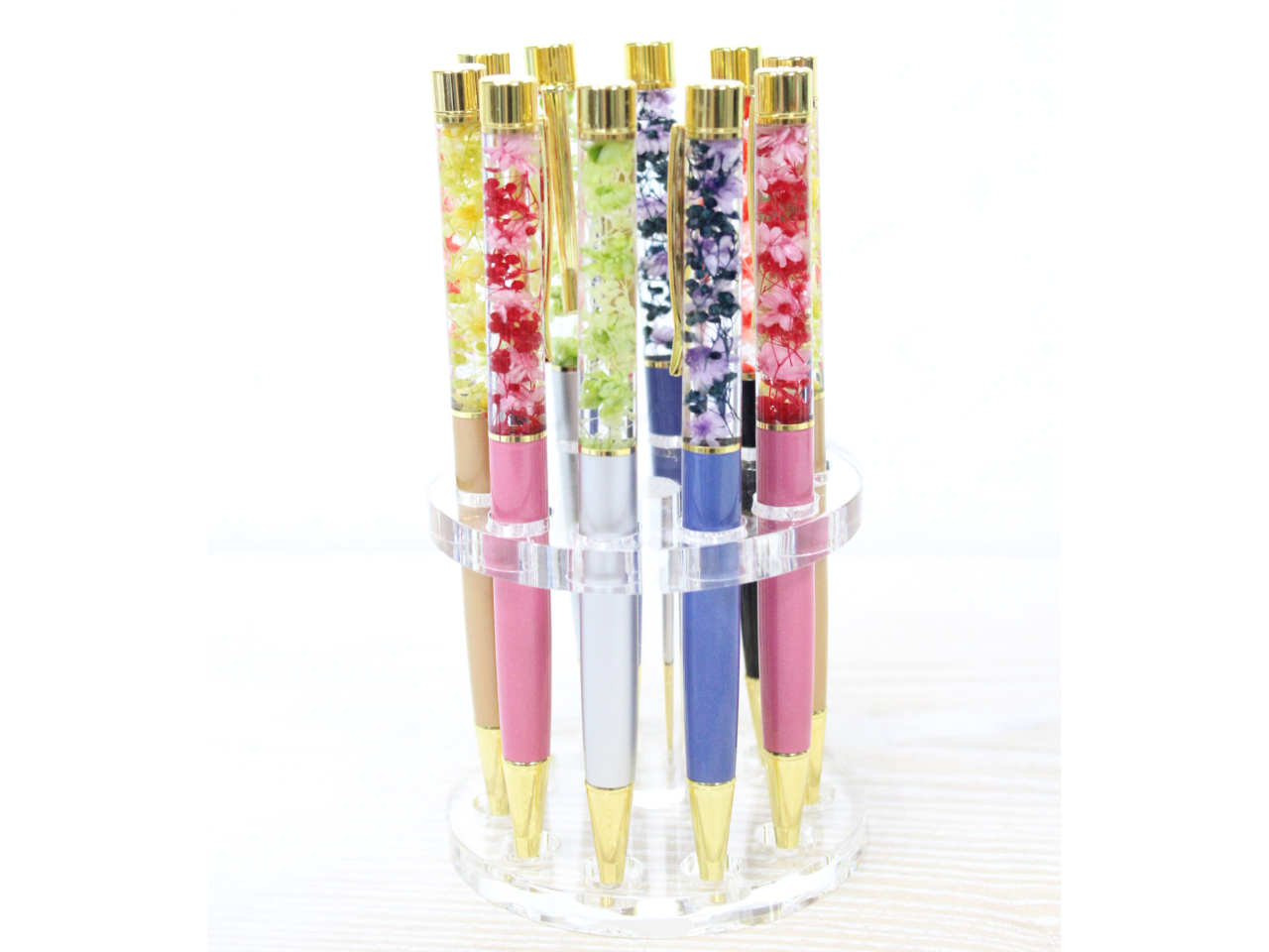 ・ハーバリウムボールペンはボールペンの上部にオイルを入れる為、急な気圧の変化で破損する可能性もありますので飛行機でご移動の方は機内持ち込みやお預けができません。