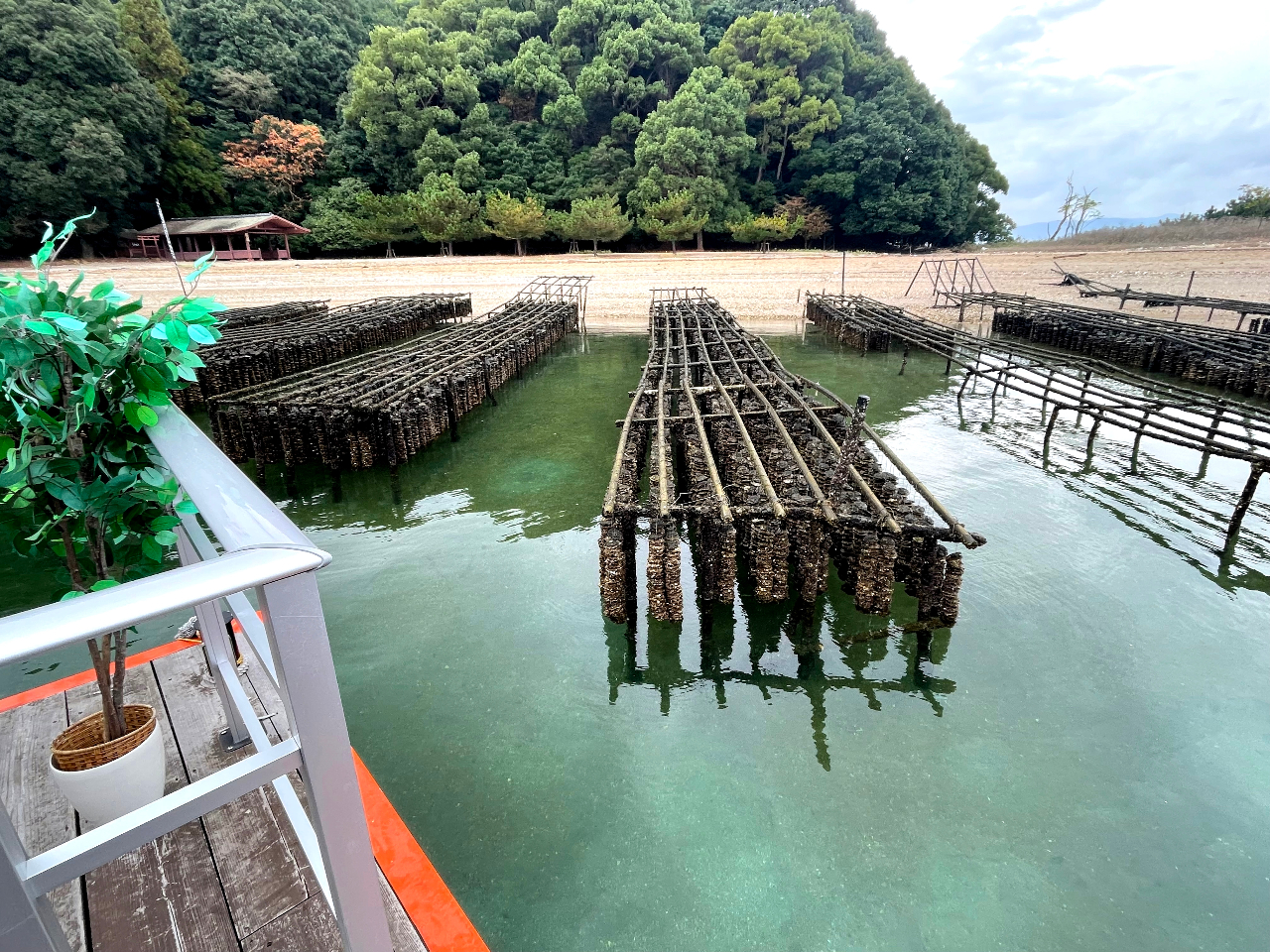 ゆっくりお食事を楽しみながら、牡蠣イカダの浮かぶ瀬戸内海や宮島の西海岸に佇む秘境神社などの景色をお楽しみください。